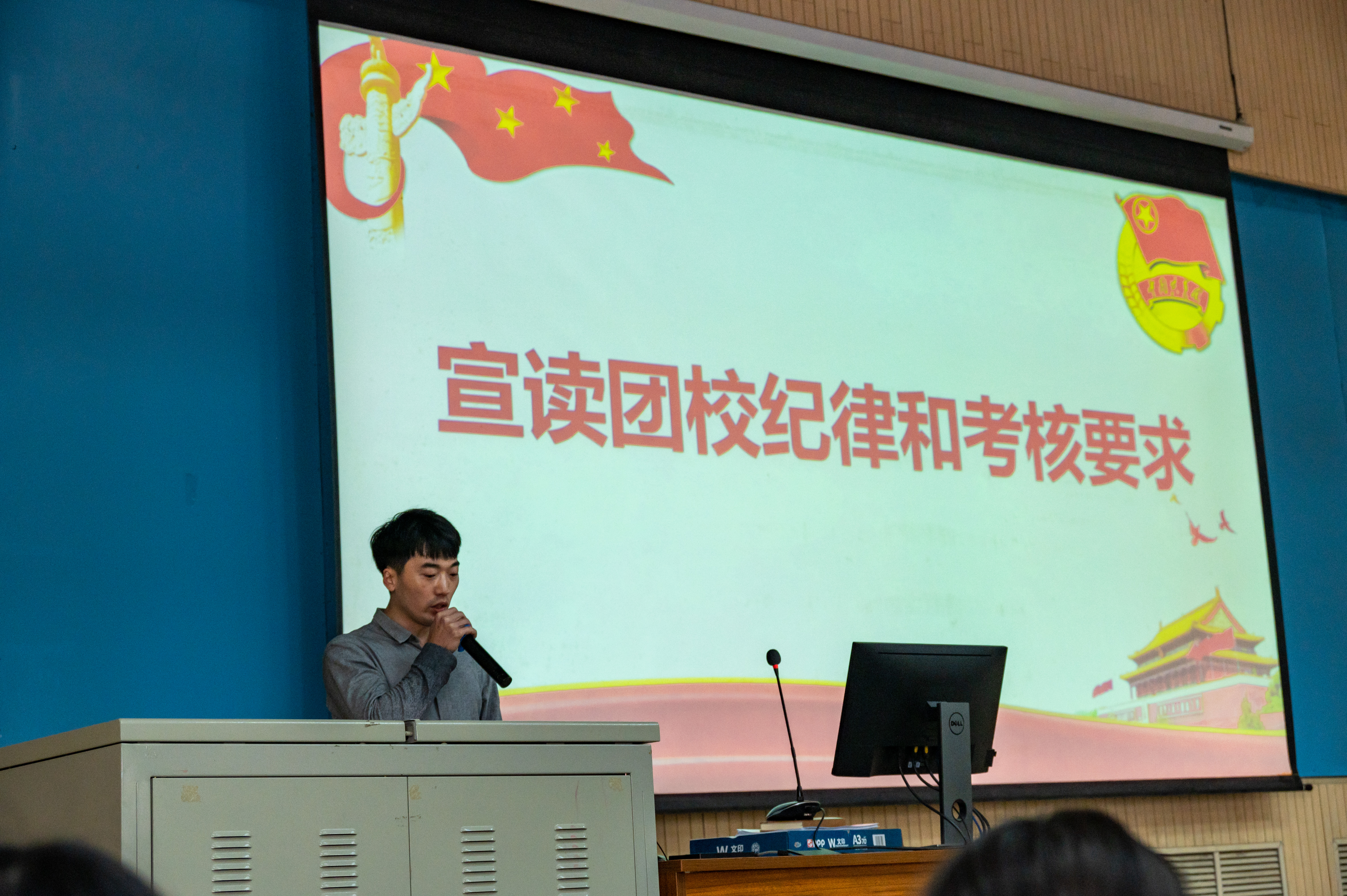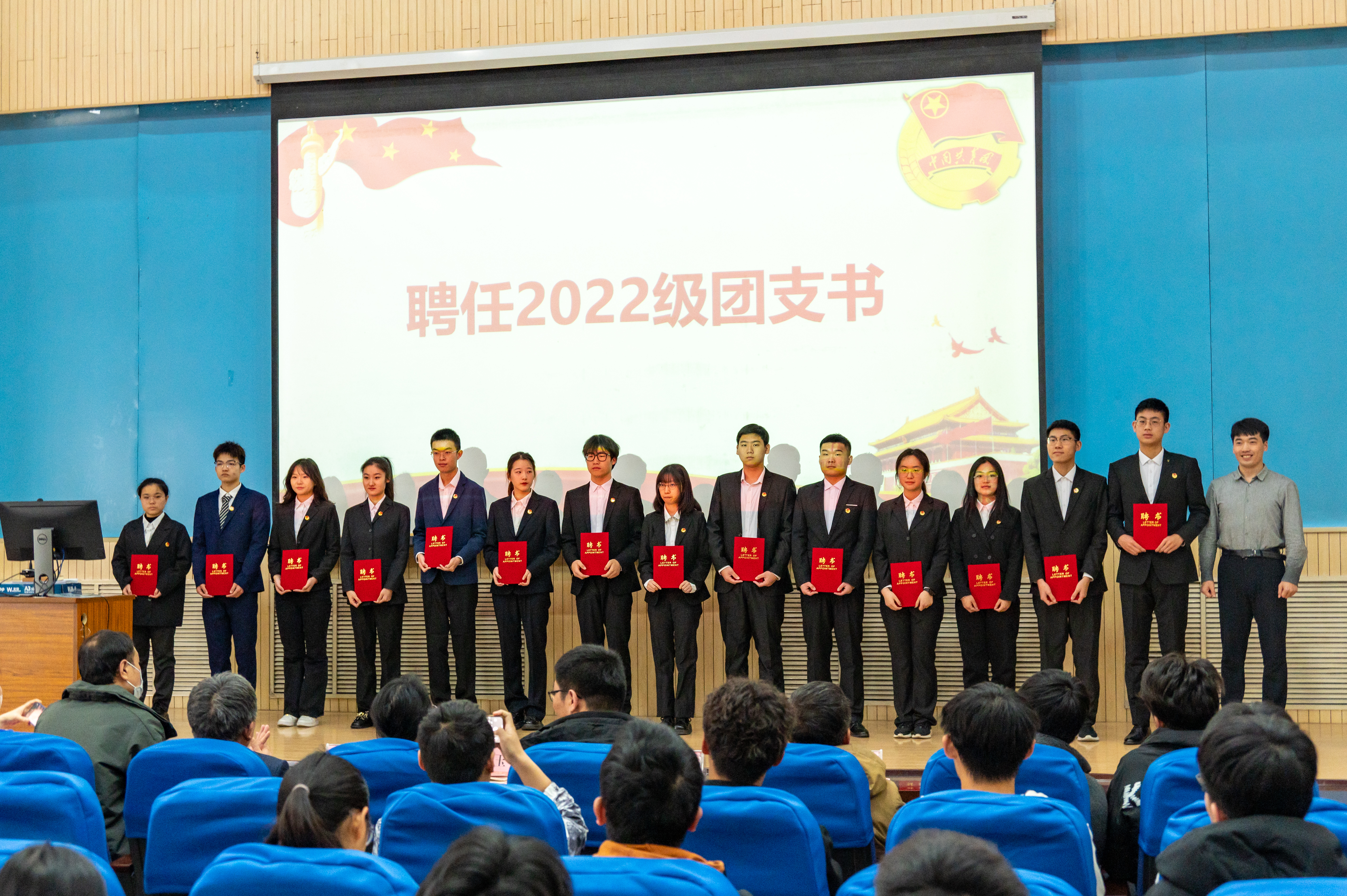 团校开班仪式在雄壮的国歌声中拉开帷幕。学院团委书记刘威宣读团校纪律和考核要求,并为2022级团支书颁发聘书。仪式上全体团员重温了入团誓词。