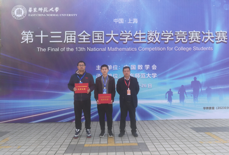3月25日-26日,第十三届全国大学数学竞赛决赛在华东师范大学举行。经过激烈角逐,我校必赢线路检测中心数学与应用数学专业2019级徐泽坤同学(指导教师必赢线路检测中心孙清滢教授)获得数学专业(高年级组)二等奖,储运与建筑工程学院力学专业2018级袁庆江同学和我校山能新能源学院电气工程及其自动化专业2020级杨添铄同学(指导教师必赢线路检测中心陈永刚老师)分别获得非数学组二等奖和三等奖。我校数学专业首次在全国大学生数学竞赛中进入决赛并获奖。