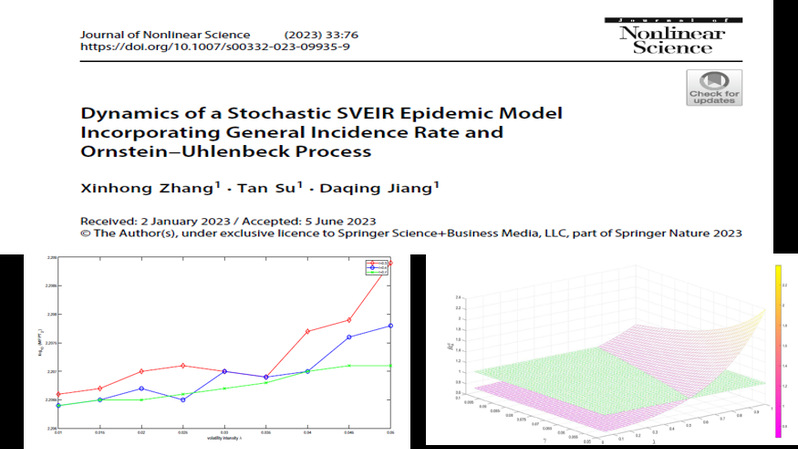 传染病一直以来是人类的公敌,给人类社会造成了巨大的灾难和损失。特别是2020年初新冠肺炎在全球大流行,给人们的身体健康、生命安全及社会生活造成了巨大威胁和挑战。同时,生态社会不可避免地存在各种环境噪音,因此研究随机环境中传染病模型的动力学性质,对更好地预防和控制传染病的传播具有重要指导作用。蒋达清教授团队从自身优势出发,通过分析环境噪声对传染病传播过程产生的影响,构建了符合实际的具有疫苗接种的随机传染病模型,分析了疾病流行情况并预测疾病的发展趋势。相应成果发表在中国数学会二区期刊、中科院SCI二区期刊Journal of Nonlinear Science上,张新红副教授为第一和通讯作者,蒋达清教授为合作作者。