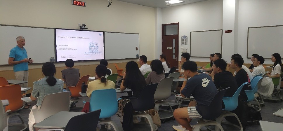 受必赢线路检测中心邀请,9月11日至9月15日,德国慕尼黑工业大学Vladimir Sidorenko教授来校为研究生讲授《Introduction to error-correcting codes》课程. 课程由浅入深地讲授了纠错码的理论和应用,包括编码译码原理,代数学相关知识,各种纠错码的构造和性质,以及纠错码的前沿研究问题等。除选课的硕士生和博士生外,另有密码学团队教师和个别本科生旁听了本课程。上课期间,学生与外教老师交流充分,讨论热烈。Vladimir Sidorenko教授表示“这一周的上课让我印象深刻,年轻的学生们求知欲很强,上课气氛也很好”。硕士生韩汶玉认为“教授在授课过程中思路清晰,辅以图解、举例等形式对理论进行阐述,更便于我们理解”;博士生任鹏丞认为自己在英文交流方面受益匪浅,“实际(用英文)交流比想象中要顺畅很多,极大地提升了我用英语交流的信心”;博士生闫铭表示“通过学习课程,由点及面,极大丰富了纠错码的知识,也从里面找到了与现在自己研究方向的结合点,后续将和教授保持联系,继续交流。”