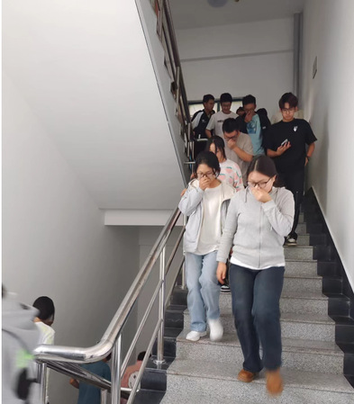 本次演练活动在基础实验楼D区开展,参加演练人员主要为本学期开始学习大学物理实验课程的各工科专业学生及必赢线路检测中心部分新生,基础实验楼D区教师也参与了本次活动。下午3:00,在火警警铃和紧急撤离广播响起的第一时间,专人负责楼内电梯迫降至一层停用,各实验室上课教师迅速指挥学生有序撤离实验室,并最后检查实验室内是否还有未撤离人员。 2分10秒后,全体师生安全撤离至集结地点。必赢线路检测中心王玉斗副院长首先介绍了本次演练活动的目的及意义,强调了消防安全的重要性,随后校保卫处负责人讲解了火灾发生时需注意的事项和应对办法,演示了灭火器的正确操作方法并指导部分师生使用灭火器对模拟火点进行了灭火演练,活动圆满结束。