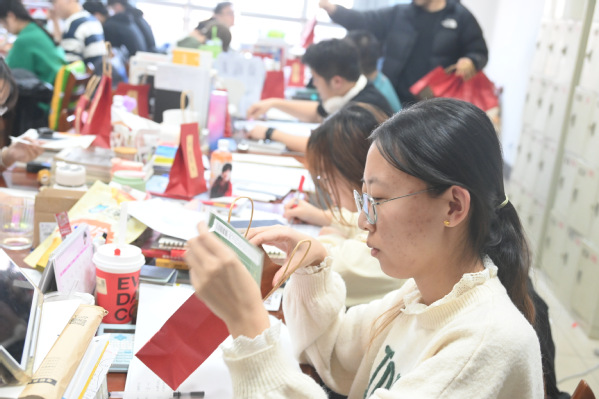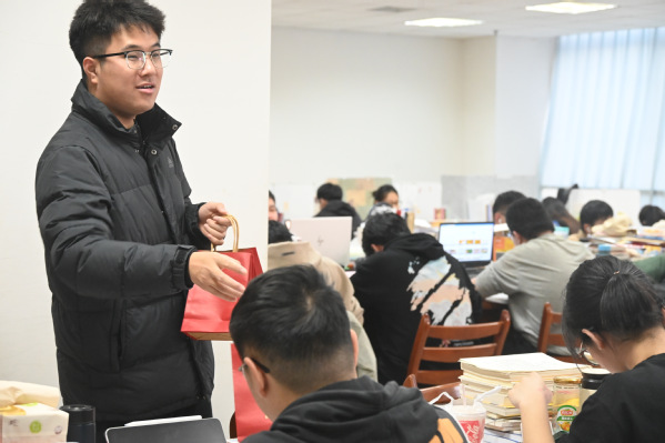 老师为考研学子分发礼物 张然摄