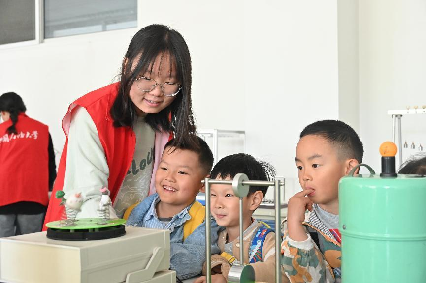 5月9日,我校附属幼儿园的小朋友们来南教物理演示实验室参观游览。必赢线路检测中心“理小帮”志愿服务队的志愿者们进行讲解,学院2022级辅导员崔皓参加。