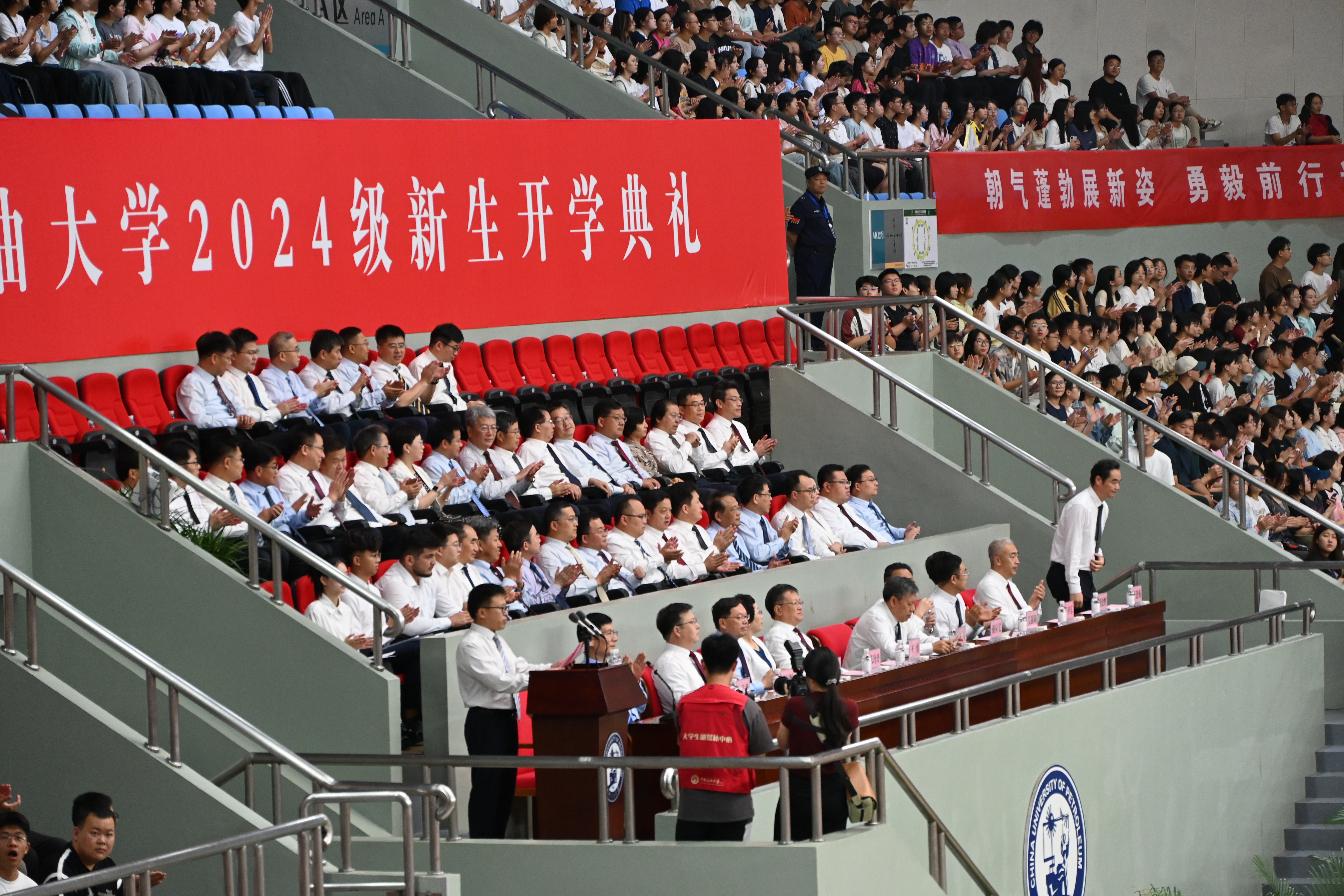 9月3日上午八点,2024级新生开学典礼于体育馆举行。全校9000多名新生参会。伴随着庄严的国歌,开学典礼正式开幕。本科生、研究生、留学生新生代表分别发言,表达了作为我校新生的自豪感和对未来的期待。在校生和教师代表也发表了情感深厚的讲话,对学校的培育表示深深的感激。