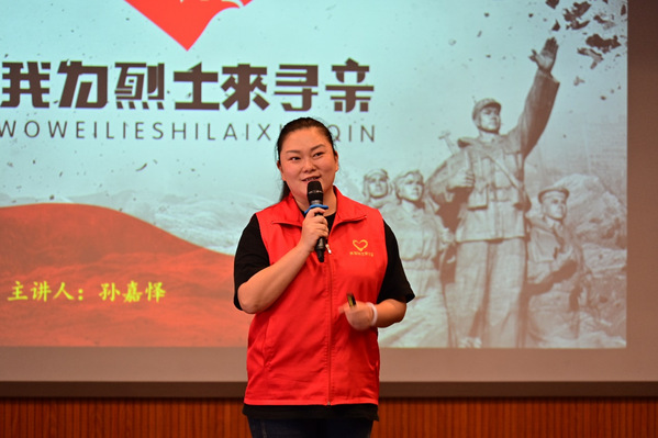 孙嘉怿与在场师生分享了为烈士寻亲的感人故事。10多年来,孙嘉怿与她的团队走南闯北,跨越了7个国家,行走了25个省份,踏过718座境内外中国烈士墓地,收集整理烈士信息3万余条。她用“最笨”的方法,从视频中截取名字,逐条记录分析,实现烈士信息与数据库的精准比对,帮助多名烈士“落叶归根”。