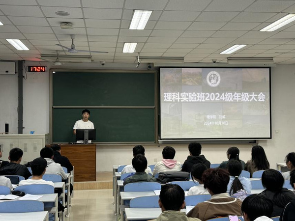 10月30日下午,理科实验班在南教213召开2024级年级大会。本次会议由理科实验班2024级辅导员刘威主持,邀请荟萃学院赵新强老师解读2024级理科实验班培养方案和管理办法,理科实验班2024级全体学生参加。