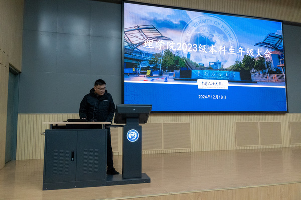 12月18日,2023级在南教100报告厅召开年级大会。辅导员焦佳奇主持,兼职辅导员邱琳琳、2023级全体本科生参会。