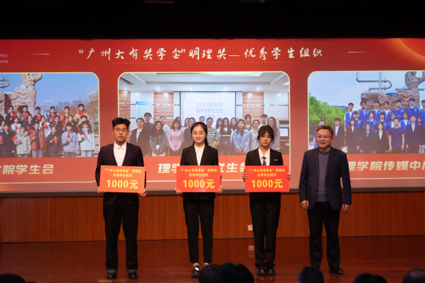 杨辉为“广州大有奖学金”明理奖优秀学生组织颁奖 钟友馨摄