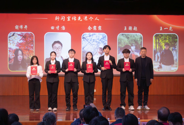 杨辉宣读《关于表彰2024年学生工作先进集体和先进个人的决定》,他希望广大同学以受到表彰的先进集体和先进个人为榜样,以学习为中心,走全面发展之路,不断提高自身思想水平、道德品质和文化素养,努力成长为德智体美劳全面发展的社会主义建设者和接班人。