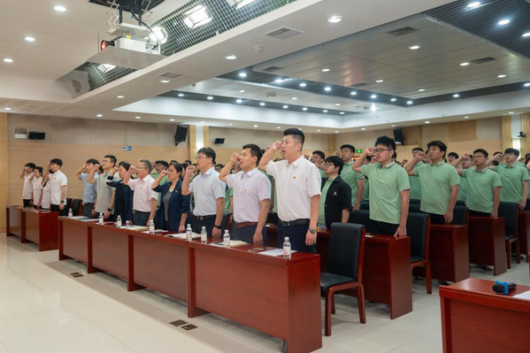 仪式在庄严的国歌声中拉开序幕,卢萌带领全体党员重温入党誓词。