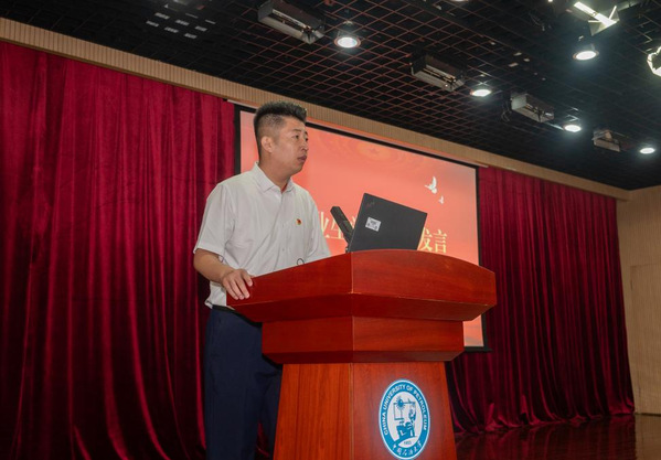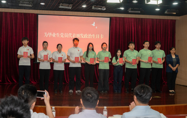 毕业生党员代表陈红宇在发言中表达了投身新征程的坚定决心:“时代的接力棒已交到我们手中,让我们以‘咬定青山不放松’的韧劲,在科技创新的浪潮中勇立潮头,在服务人民的实践中锤炼品格,用奋斗书写无愧于党、无愧于人民、无愧于时代的青春篇章!”
