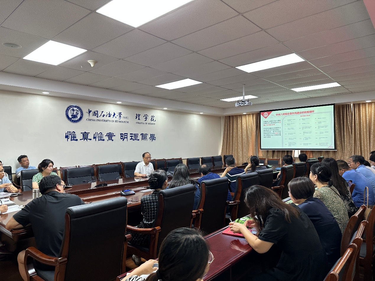 为进一步加强党员作风建设,推动深入贯彻中央八项规定精神学习教育走深走实,7月7日,基础数学系与数据科学与统计系党支部联合开展主题党日,邀请学院院长魏宝君教授为全体党员教师讲授专题党课,活动由数据科学与统计系党支部书记宋允全主持。