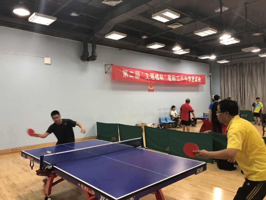 比赛采用领导干部单打、男单、女单、男双和混双的混合比赛顺序进行,并严格按照中国乒协最新《乒乓球竞赛规则》举办。本次乒乓球比赛精彩纷呈,选手熟练发球、杀球、拉球,引得喝彩加油声不断。乒乓球比赛的举办不仅有助于教职工身体素质的增强,而且进一步增进了文理楼全体教师的友谊,为大家团结协作打下坚实基础。